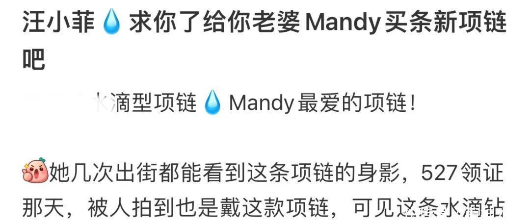 为此,还有网友嘲谑汪小菲另眼相看,之前开心养着前妻和前妻的老公,对马筱梅却略显寒酸。尤其是看到马筱梅每次出门都只带着一款项链,吐槽汪小菲太鄙吝。但也有识货的网友,直言这条项链不简便,并非汪小菲鄙吝。